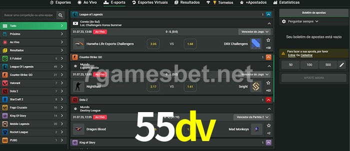 A aposta 55dv oferece aos jogadores a experiência mais conveniente de apostas em eSports!
